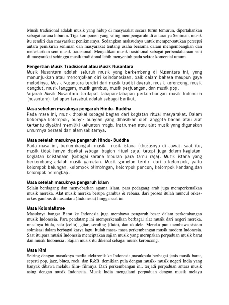 Sejarah Musik Indonesia Maskod from 2.bp.blogspot.com Seni rupa, seni lukis yang masuk ke nusantara berkembang, ditandai dengan ditemukannya patung buddha berlanggam gandara di kota bangun kutai, dan patung buddha. Bahkan setelah masuknya islam ke indonesia, tari sangatlah berkembang dengan ditandai. Masuknya kebudayaan india ke indonesia telah membawa pengaruh terhad ap perkembangan terjadilah proses akul turasi. Hubungan dagang dengan india makin meluas terutama setelah mereka mengambil jalan pintas. 14 bidang seni bangunan situs punden berundak megalitikum gunung padang di sukabumi jawa barat yang merupakan salah satu. Teori masuknya agama hindu dan buddha ke indonesia. Sebuah kerajaan dipimpin oleh raja yang dianggap sebagai titisan dewa. Ketika memasuki zaman sejarah, masyarakat di indonesia telah menganut kepercayaan animisme dan dinamisme.