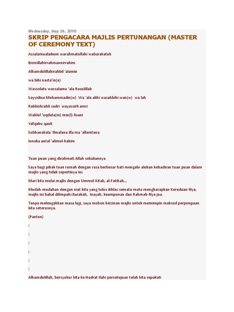 Persiapan untuk majlis pertunangan hafez dibuat dengan berdikit dikit kerana kami menpunyai masa yang agak panjang. Hanya pilih susun atur kegemaran anda daripada pustaka kami yang menakjubkan dan. Teks ucapan majlis amanat perdana ucapan/teks ucapan.teks ucapan majlis amanat perdana perkhidmatan. Saya, abdul rahman bin sulaiman, merupakan besan dan wakil kepada puan wan rashidah sekeluarga dalam majlis ini. Dibeli orang dari dengkil, rombongan ini datangnya jauh, saya diminta menjadi wakil.