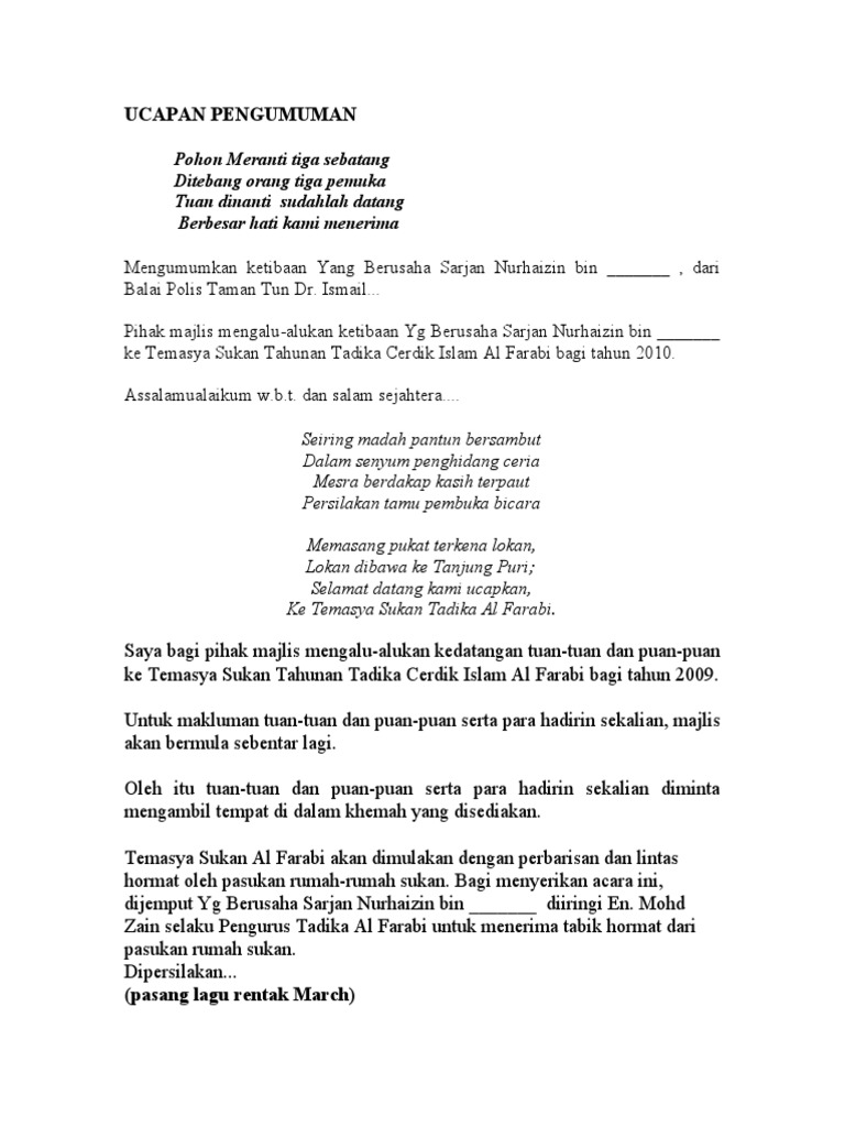 Sekolah Kebangsaan Nami Pesta Sukan Dan Kebudayaan Perkhidmatan Pelajaran Peringkat Negeri Kedah 2015 Pskppk from 2.bp.blogspot.com Pengurusan kantin terbaik dan beberapa anugerah lain dalam bidang sukan dan kokurikulum. Kemasukan pelajar ke kolej via cgumizan.blogspot.com. Ucapan selamat datang ke majlis makan malam sempena. 1472 hits video ucapan perpisahan rakan sekerja yang pindah tugas ke tempat lain ini adalah contoh ucapan perpisahan kerja jika anda wakil pekerja nak buat ucapan perpisahan untuk kawan sekerja yang pindah tugas boleh refer dalam video ini ucapan per. Untuk menggunakan teks ke ucapan dalam bahasa berbeda, baca menggunakan fitur ucapkan dengan tts multibahasa. Menteri perdagangan antarabangsa dan industri. Teks ucapan 2021 induction programme for judicial commissioners 29 march 2021, opening remarks by tun tengku maimun binti tuan mat, the chief justice of malaysia. Semangat kerjasama dan bertoleransi amatlah penting dalam menjayakan sesuatu aktiviti sukan.